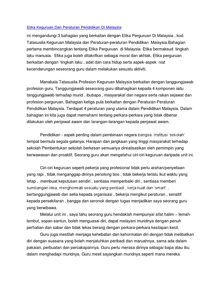 Etika Keguruan Dan Peraturan Pendidikan Di Malaysia Pdf
